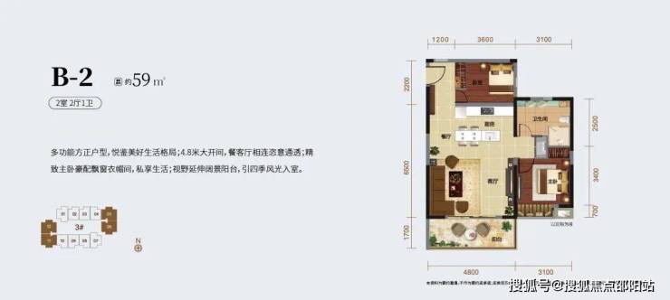 ⭐B-2户型建筑面积:约59+20㎡