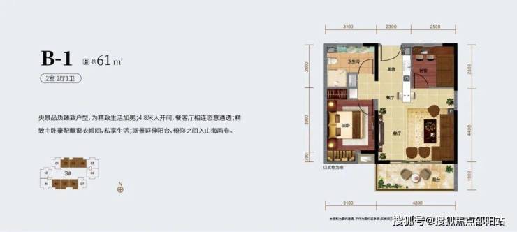 ⭐B-1户型建筑面积:约61+13㎡