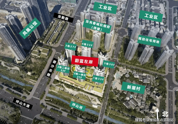 蔚蓝左岸花园,位于坪山区碧玲街道沙湖社区坪山大道与碧沙北路交汇处东南侧,项目地处的沙湖板块作为坪山西门户,根据坪山区政府的规划将定位为碧岭深港生命健康产业合作区, 将建设成为深港科技创新协同引领“创新核”、彰显地区生态人文脉络“生态谷”、面向未来宜居宜业魅力“智慧城”。