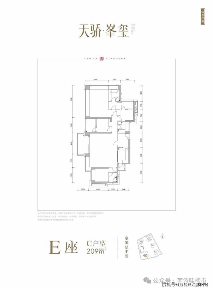 E座:约209-211㎡4房3卫 南北通