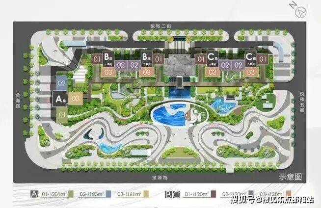 住宅梯户:A座3梯3户;B/C座2梯3户