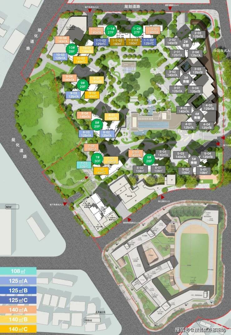 高大的教学楼、宽敞的体育场,且抬高的运动场底部,设置下沉式篮球场、兴趣大道、游泳馆、科技馆、艺术厅等场馆。