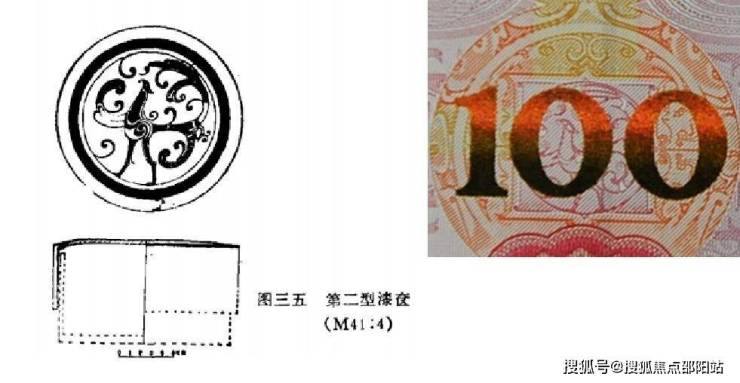近日,四川省文物考古研究院研究馆员黄家祥在青川县青溪古镇老县衙遗址调研时,意外发现青川郝家坪战国墓群M41:4出土的漆奁盖顶的凤鸟图案,与第五套人民币100元“100”字样下方的装饰纹样高度相似,相似度经其初步研判达90%。