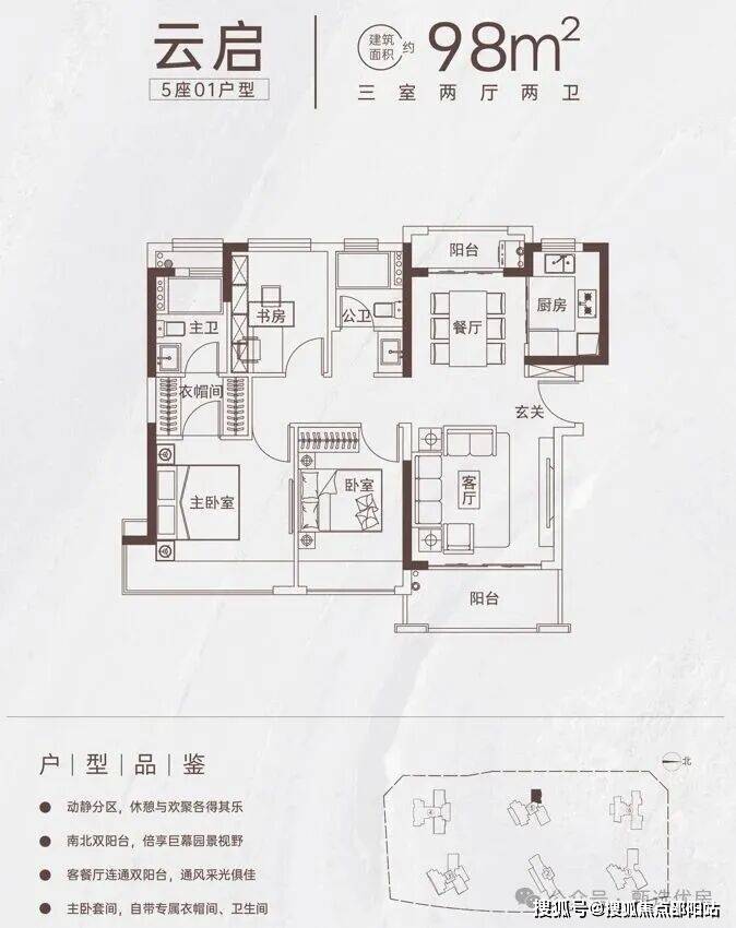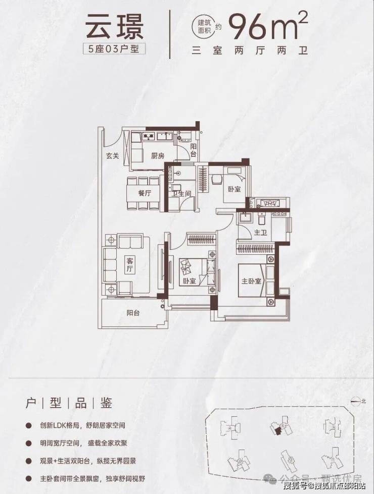 🏷户型鉴赏云启:98㎡三房两厅两卫
