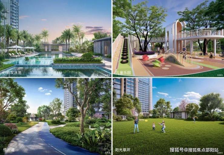 打造约380㎡分龄双泳池、约630㎡儿童乐园、约600米慢跑道、约950㎡阳光草坪四大活力聚场,五大主题社区会客厅,重塑生活新场景。