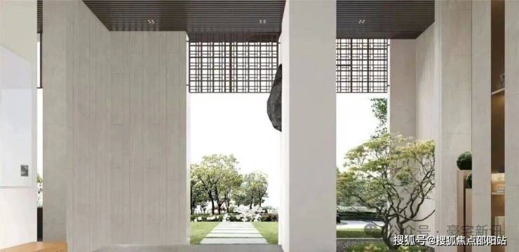 🔘威仪门庭:以东方雅韵为出发点,从尺度、比例、制式、材质等细节方面,将新中式建筑精髓与当代格调完美融汇于车库、大堂、社区大门之中,极致挑高尺度,尽显恢弘气度