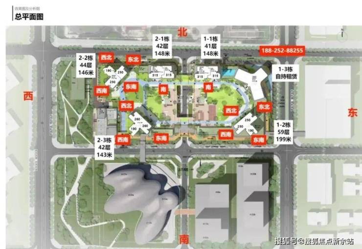 总楼层:1A栋41层;2A、2B、2C栋42层,1B栋59层,1C栋自持租赁54层,幼儿园4层。