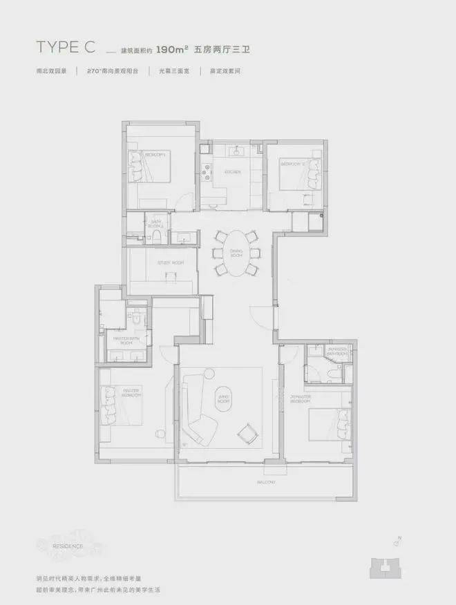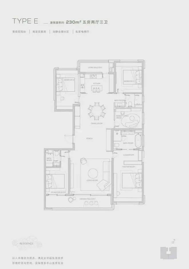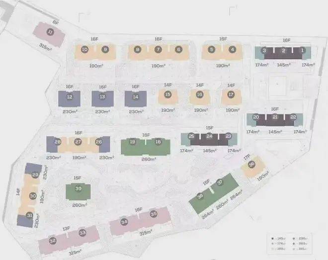 在售户型:145㎡三居、174㎡四居、190m²五居和260及320m²五居