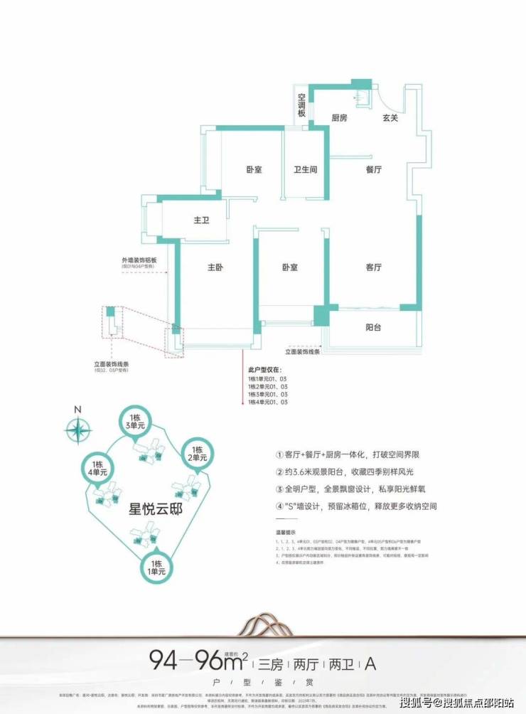 主力户型建面约95-124㎡臻品三至四房,启悦城市美好未来