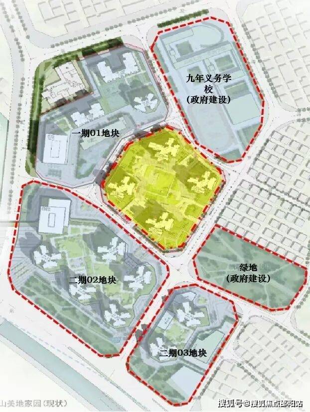 01地块→星悦名庭,黄色区域04地块→星悦云邸