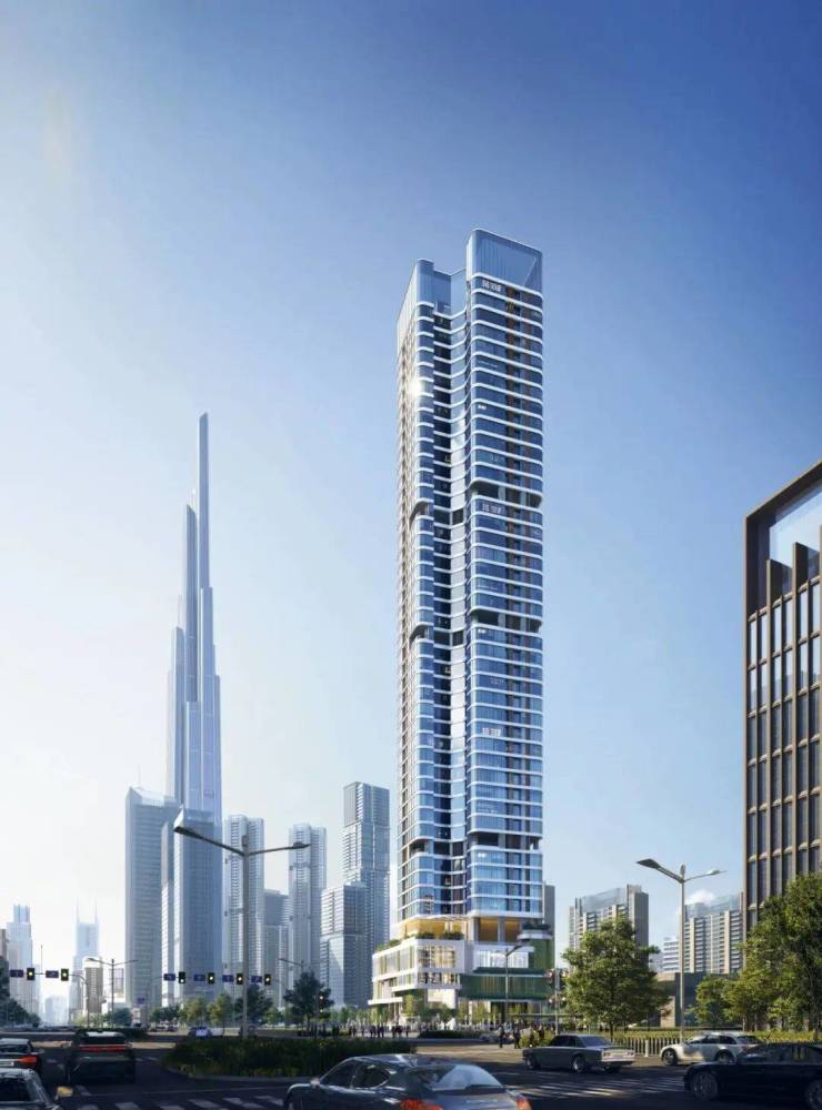 项目位于深圳深南大道与文锦路的交汇处,建面约8.12万㎡,地下3层,地上44层,融合了星级俱乐部、塔尖藏品、商业、休闲、生态等业态,提供建面约60-108㎡法拉利总裁空间和建面约227-249㎡高定大平层,共324席。
