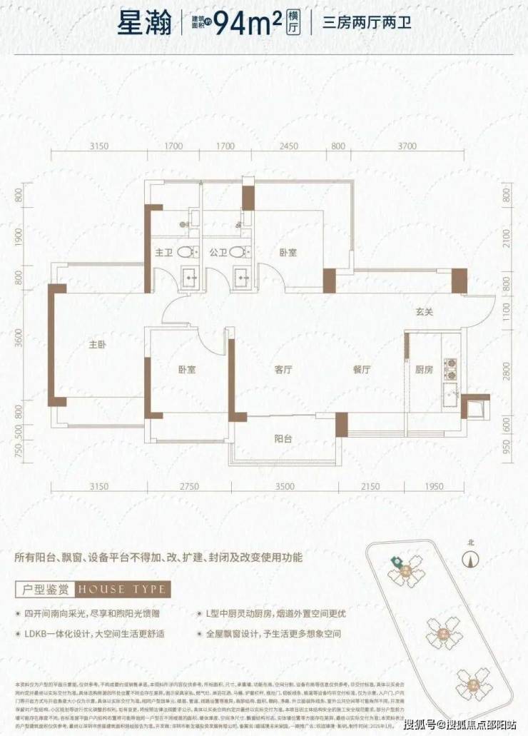 龙华观澜,玖珑瑧境·新玥(备案名:福城境未来家园)计划将在2026年3月份取证入市,本次首推1栋1单元,共167套房源,面积有77㎡的3房1卫,87-94㎡的3房2卫,111㎡的4房2卫户型,全南朝向,也是观澜第二个新规建设的新盘,得房率高达98-105%。