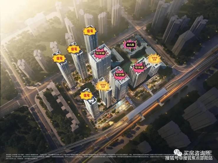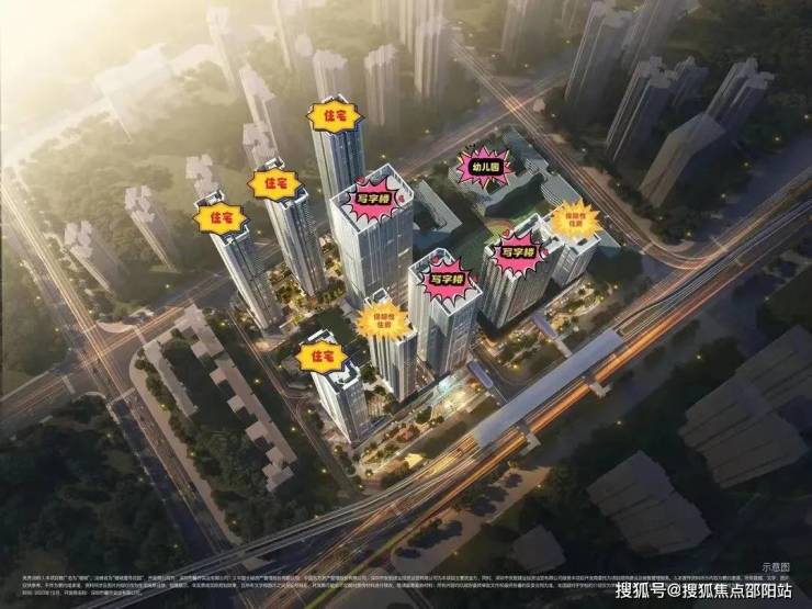 根据公示规划,项目由4栋45F超高层住宅、3栋40F、30F写字楼、1栋45F保障房、1栋3F幼儿园以及一所九年制学校组成,未来将建设成为集住宅、办公商业为一体近40万㎡的TOD城市商住综合体项目。