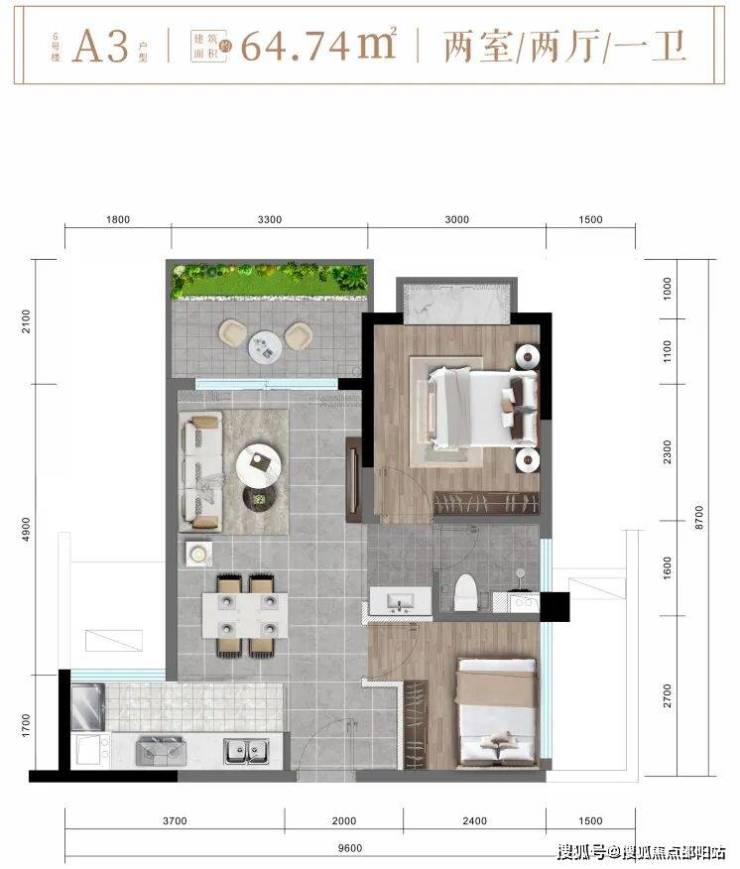 ✨ 6楼A3户型约64㎡精致两房两厅一卫