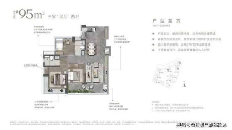 主卧小家化:主卧+衣帽间+独立卫浴+270°转角巨幕飘窗(仅01户型)