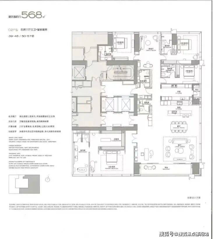 高区(39-57层)400-570㎡,均价约18.9万/㎡