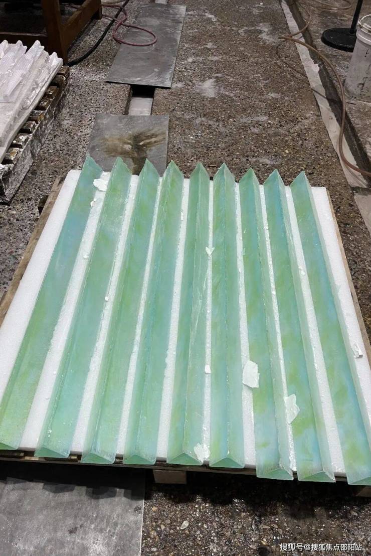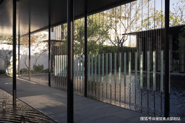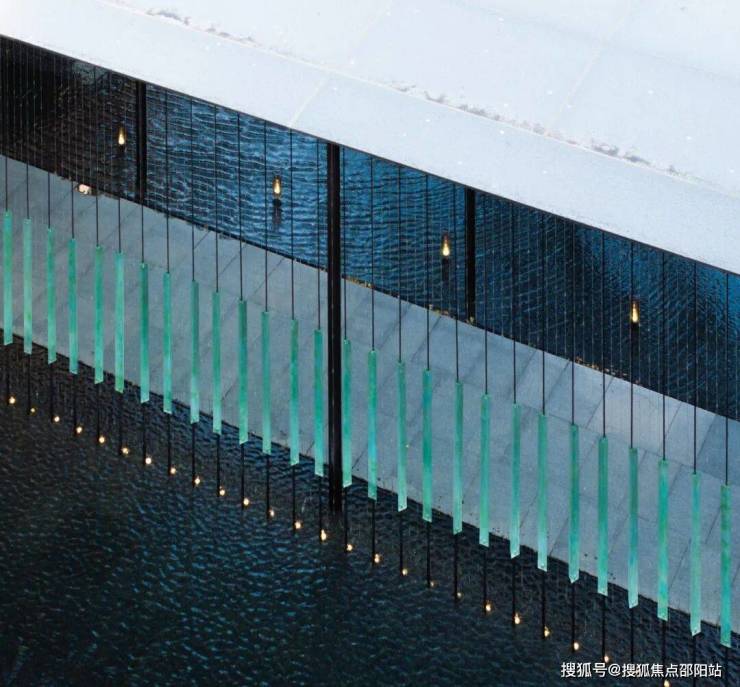 岭南元素的琉璃工艺通过熔炼等工艺,呈现出丰富的色彩与细腻纹理。与水帘相呼应时,琉璃在光影变化中赋予空间生命,透过阳光琉璃璃出斑斓光彩,营造出绚丽的光彩。