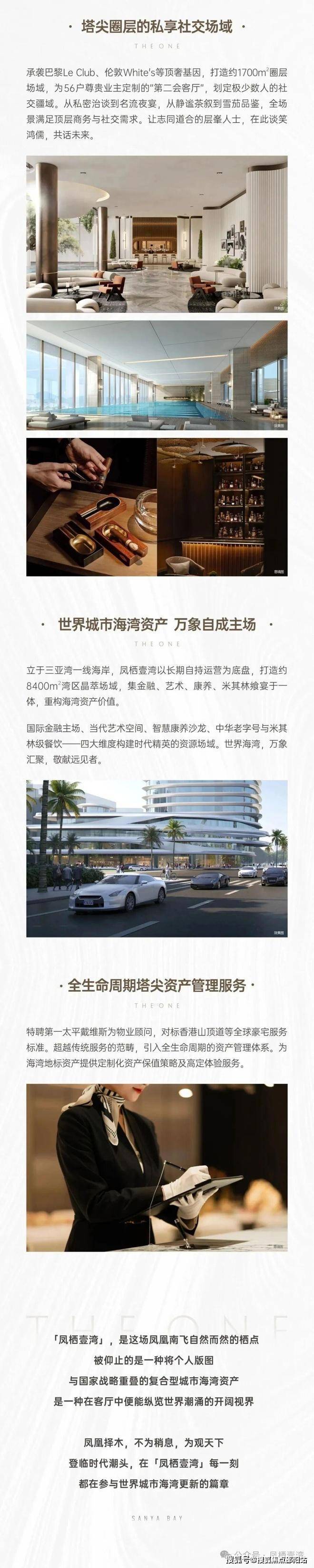 凤栖壹湾精准落子三亚中央商务区(CBD)内唯一的南向亲海板块——凤凰海岸,雄踞约22公里三亚湾黄金岸线“龙首”之位。项目左拥总投资约35亿元、即将于2026年底启幕的三亚国际艺术港(涵盖全球文物艺术品免税交易中心及1400座歌剧院),右依年客流量超203万人次的中国首座8万吨级国际邮轮母港。艺术金融、邮轮经济与一线海景在此交汇,重新定义自贸港时代的资产价值维度。