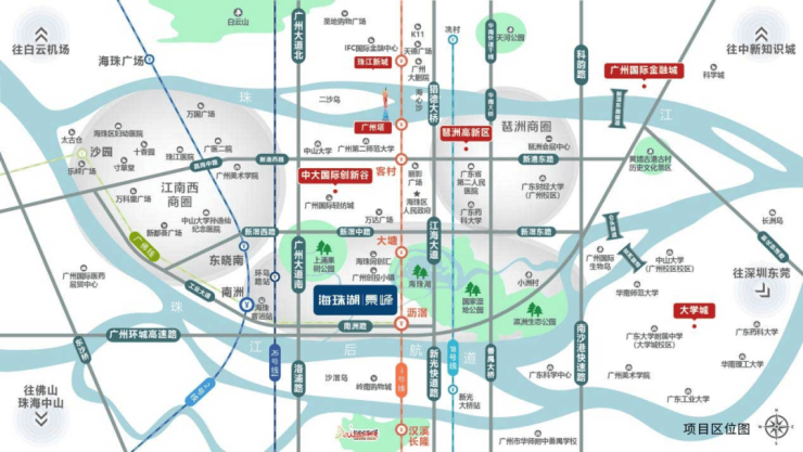 海珠湖景峰位于广州市海珠区南州路761号-819号,广州地铁2号线与广佛1号线交汇南洲站、广州地铁3号线与广佛1号线交汇沥滘站双地铁口附近;坐落于“中大国际创新生态谷”,依托海珠区“一区一谷一圈”创新发展格局,以产业集群、科技成果转化、产业金融、创新生态作为发展重点,全力助推区域经济转型升级。