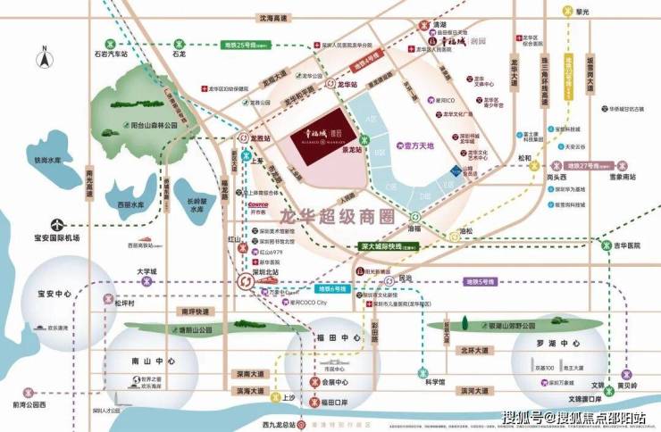 项目占位龙华超级商圈几何正芯,龙华商业中心城市更新北片区,傲踞天赋C位地块。