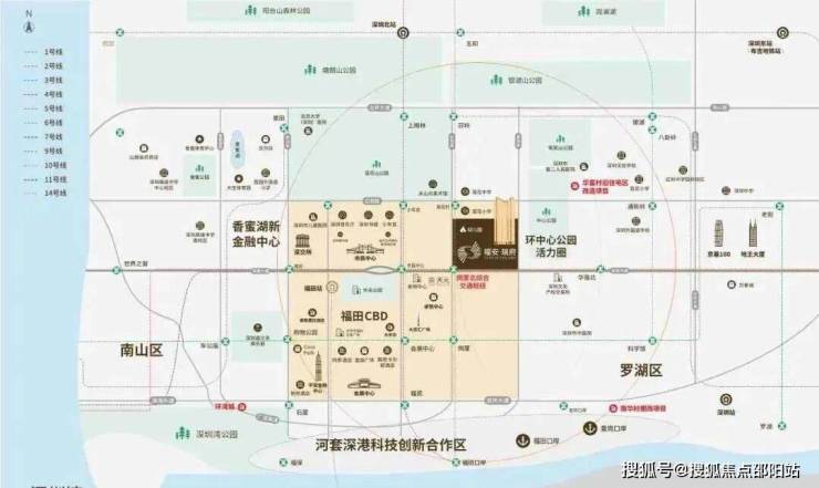 交通枢纽中心——这是中国罕有的城市中心和综合交通枢纽结合的CBD,不仅有CBD高铁福田站、岗厦北枢纽,还有福田、皇岗双口岸,2条城市东西干道(深南大道、滨河大道)、2条高速公路入口,8条地铁线、近50个公交站点等,迸发超级效率。