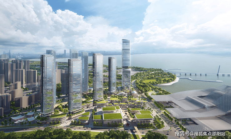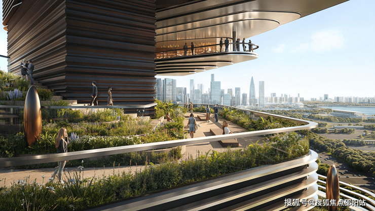 在建筑单体设计上,通过高达12米的架空层,确保首层住户即位于约20米的观海高度,实现“户户观海”。单侧布局核心筒的布局方式也最大限度地拓宽了住户的景观界面。地标塔楼高度达250米,住宅塔楼则在161米至192米之间高低错落,共同勾勒出和谐灵动的城市轮廓。