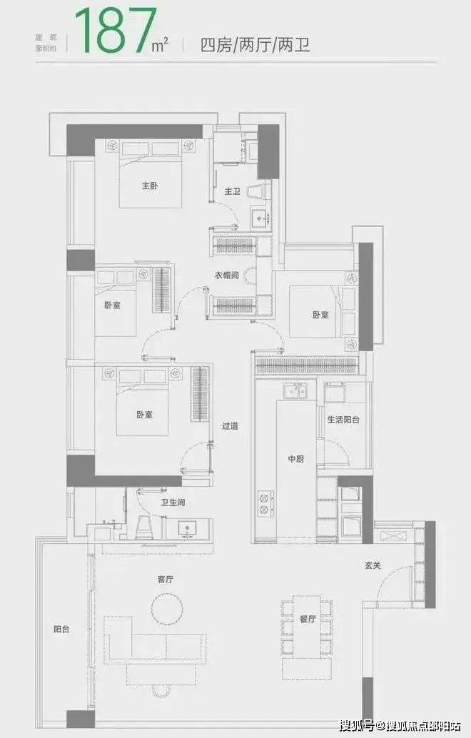 建筑面积约187㎡户型