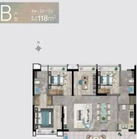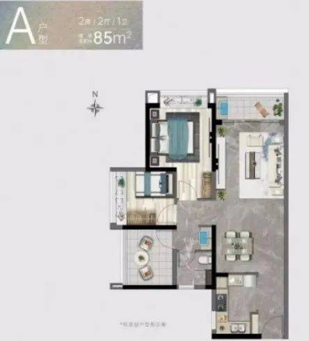 户型面积涵盖建面约85㎡2+1房两厅一卫,105㎡3+1房两厅两卫,118㎡3+1房两厅两卫。