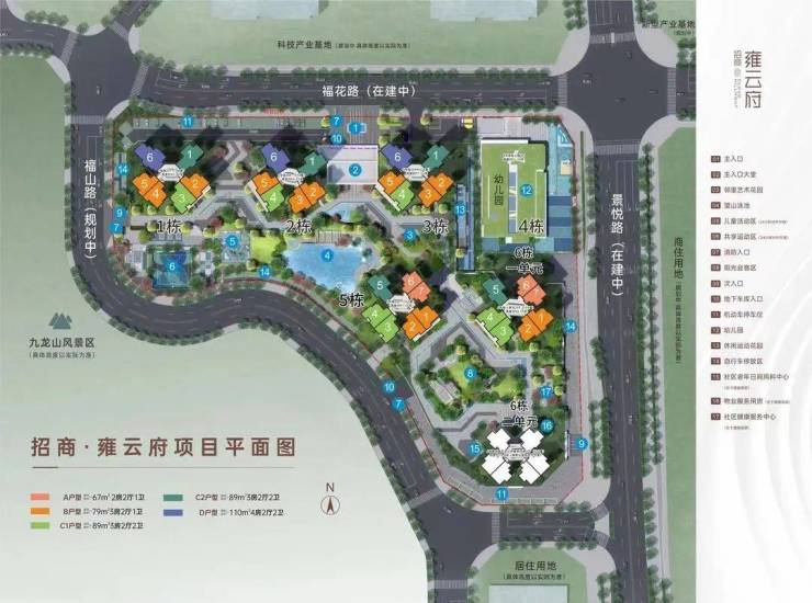 招商雍云府坐落于龙华区福城街道的九龙山社区,毗邻龙澜大道,其西侧与风景如画的大水坑社区公园相邻。向北望去,九龙山智能科技城映入眼帘,这里汇聚了华为的新基地与美团的总部,科技氛围浓厚。向南则接近万科九龙山,呈现出一派繁华的景象。而其西侧,福城土地整备利益统筹项目正稳步推进,未来发展潜力巨大。至于交通,虽然最近的4号地铁线“长湖站”距离约2.8公里,但便捷的交通网络依然让这里的出行变得轻松自如。