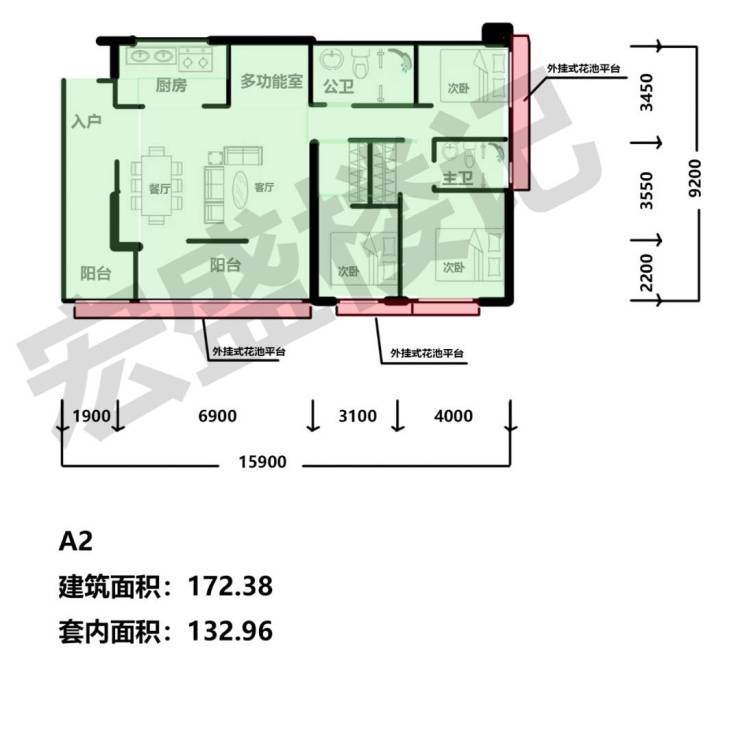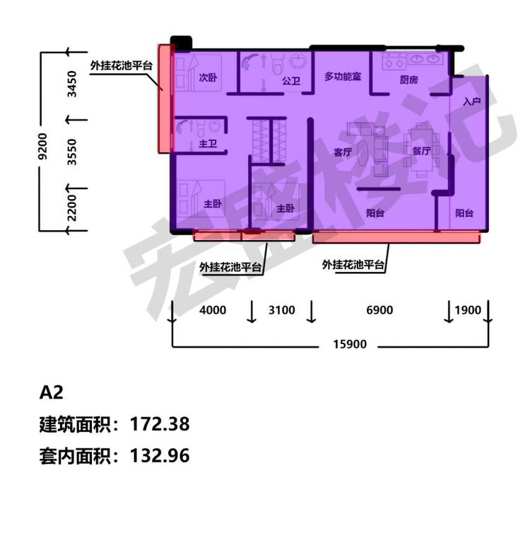 住宅建面约38.8万平,预计商品住宅总房源达到约4482套,几乎相当于目前宝中其他待售新盘总货量之和。其中套内面积小于90平的共有3538套,占总数比例78.94%。还配建有商业约3.43万平,和一所约3000平的幼儿园,容积率6.2,绿化40%。