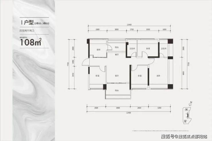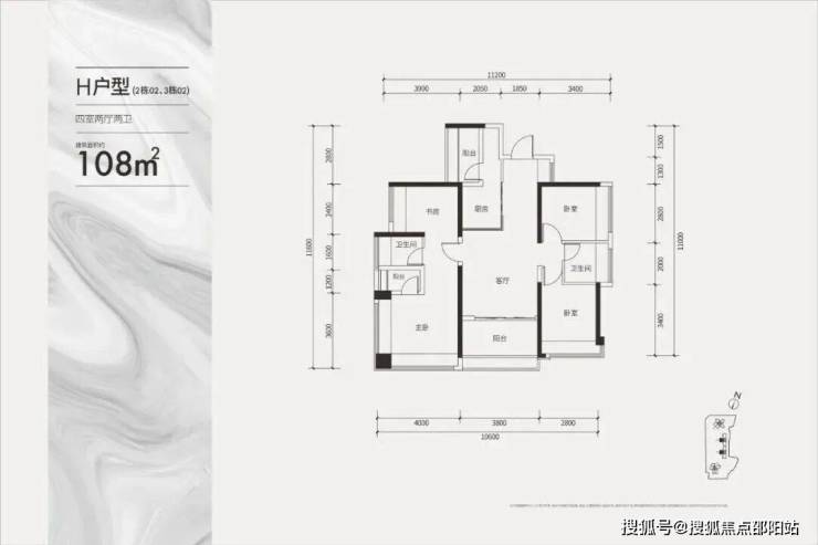 建面约108㎡双龙抱珠四房户型