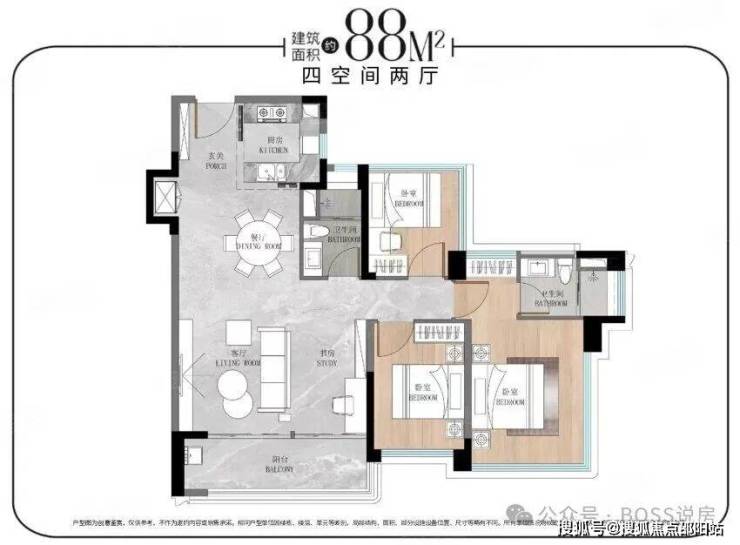 (2)“0飘窗”黑科技:虽然阳台率从25%降到20%,但通过“0飘窗+薄墙体”设计,实际使用率120%,相当于107㎡户型能当128㎡用,直接叫板天河125㎡产品。