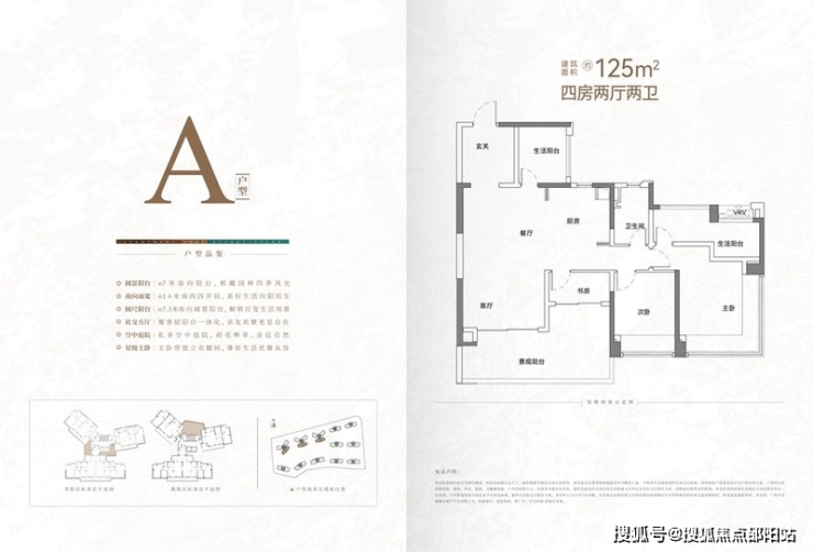 125㎡四房两厅两卫户型性价比突出,总价 275 万起,偶数层赠送约 30㎡公共露台