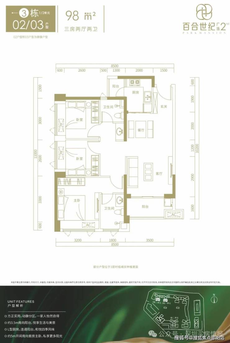百合世纪广场二期(B-02地块),总占地面积约3.6万㎡,总建筑面积约27.03万㎡,计容建筑面积约19.38万㎡,共由3栋7个单元组成,总高是31-48层的住宅,其中1栋1单元住宅42F,2栋2单元住宅47F,2栋1单元住宅46F,2栋4/5单元住宅48F,3栋1/2单元住宅31F,另外2栋2单元公寓30F,2栋3单元商务办公楼22F,4栋是1所九班制幼儿园。