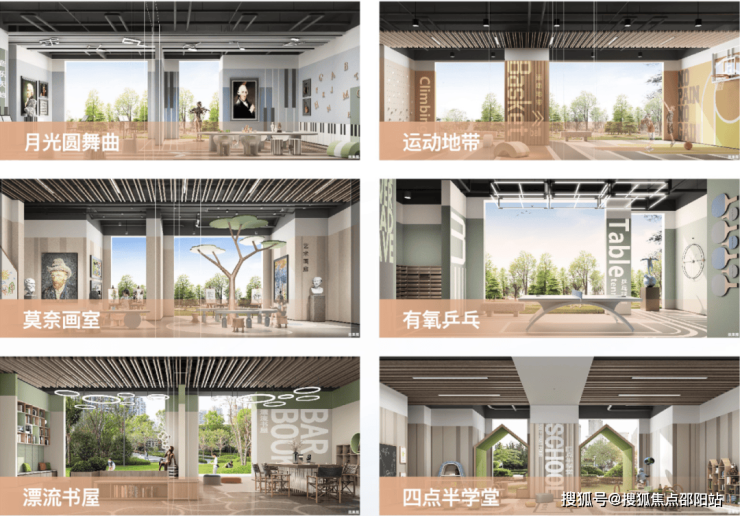 约1600㎡全成长Kids泛会所,片区首创以科学智力开发理念,打造青少年专属运动、学习、交际平台,规划漂流书屋、四点半学堂、莫奈画室等8大主题空间,启蒙孩子快乐成长。