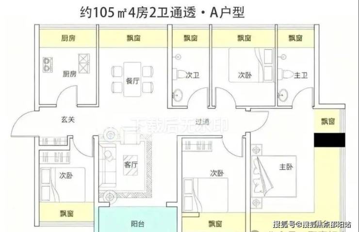 户型面积为105-188㎡纯四房,2梯4户,西南向无遮挡看海,西北向看高尔夫+碧海湾公园。