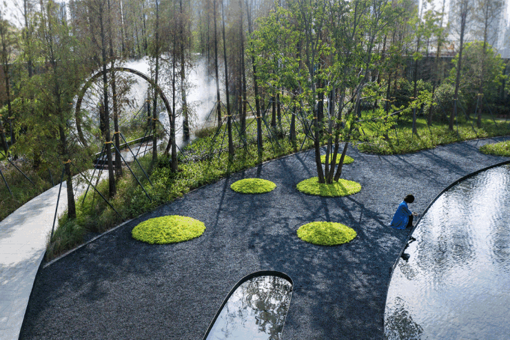 其以近1公里的中画轴,融入城市公园种植的多种植被点缀,打造出快慢兼备、静/闹双区并存的归家动线,让你下班回家宛如在公园漫步。