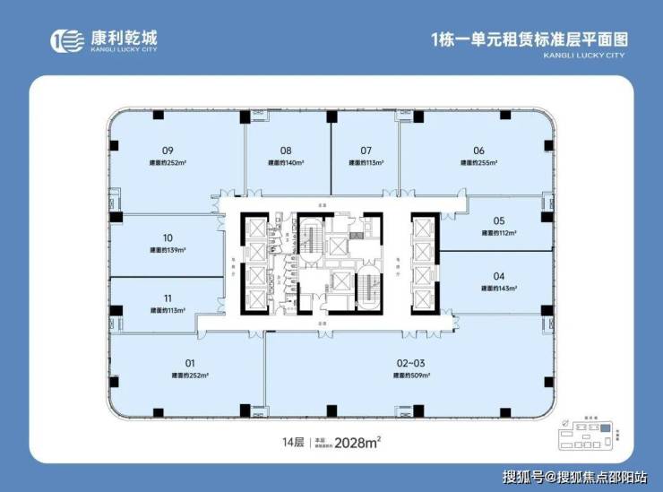 »【1栋主塔中区租赁户型图】建筑面积:约113-509㎡