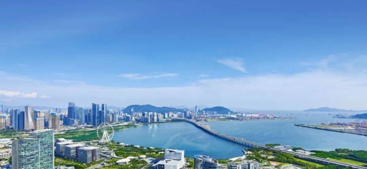 东南向的景观同样令人惊叹,近揽中央绿轴、青少年宫、宝安图书馆、滨海艺术中心等人文景致;远眺大小南山自然盛景;湾区之光摩天轮与前海湾海岸风光尽收眼里。