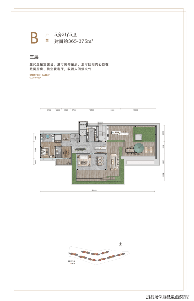 如此超尺度的规格,在上叠露台同样具备!超340㎡的敞阔空间,可实现大尺度高尔夫果岭观景平台、开放式会客空间、露天泡池、户外餐吧等层次分明的功能布局。在隐贵的度假感之中,创造出一方体验感绝佳的空中花园。