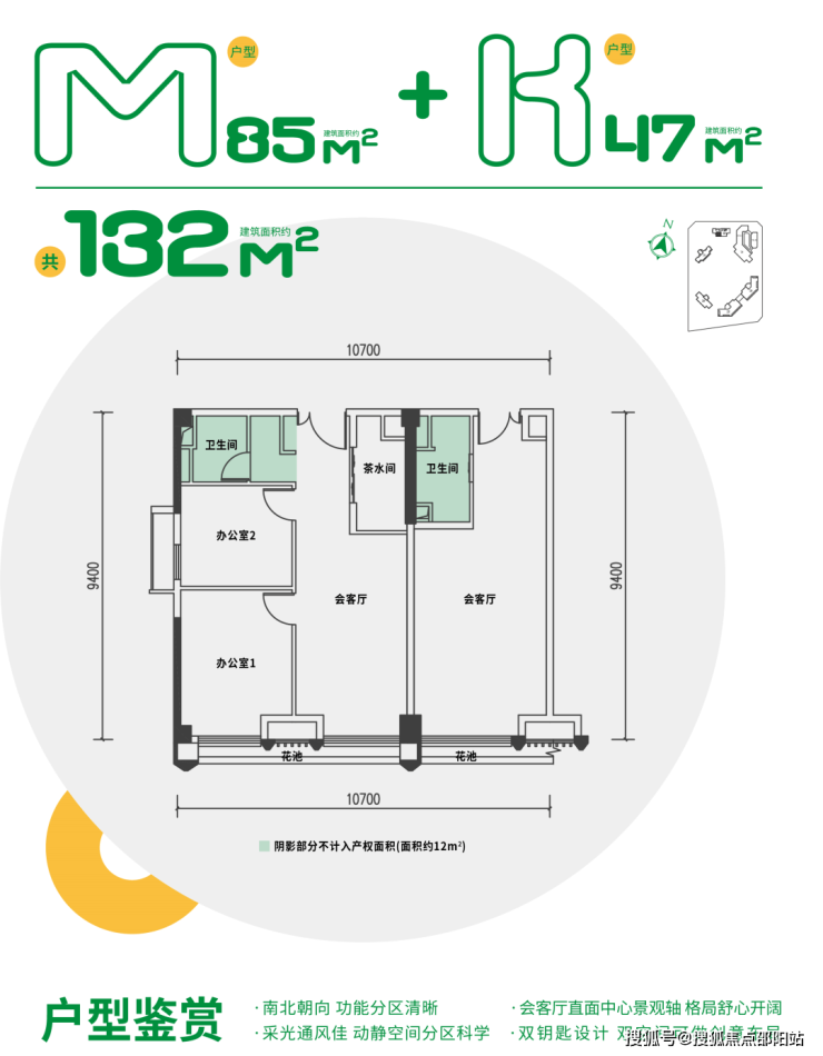 M户型两房一卫+K户型开间 132㎡双钥匙