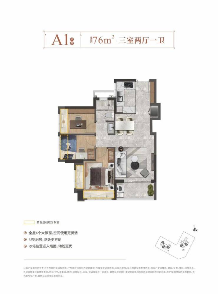 ——建面约76㎡3房2厅1卫