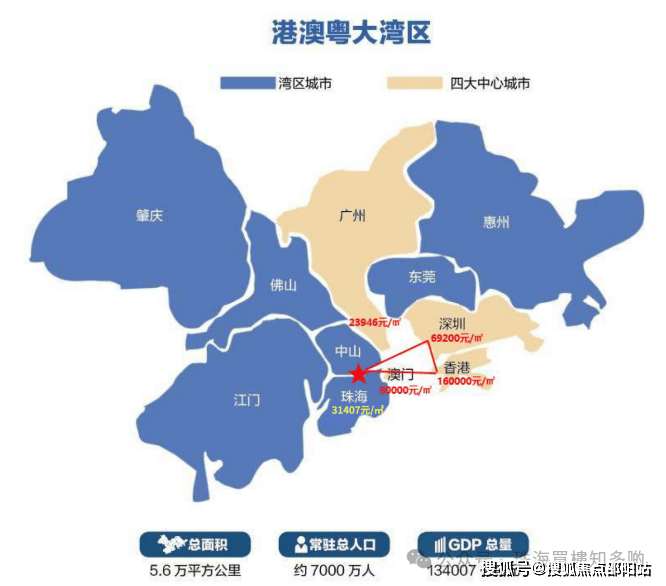 地处粤港澳大湾区几何中心,珠海、广州、深圳、香港、澳门环绕。10分钟到珠海主城中心,周边3-5万+/㎡,房价差1/4。