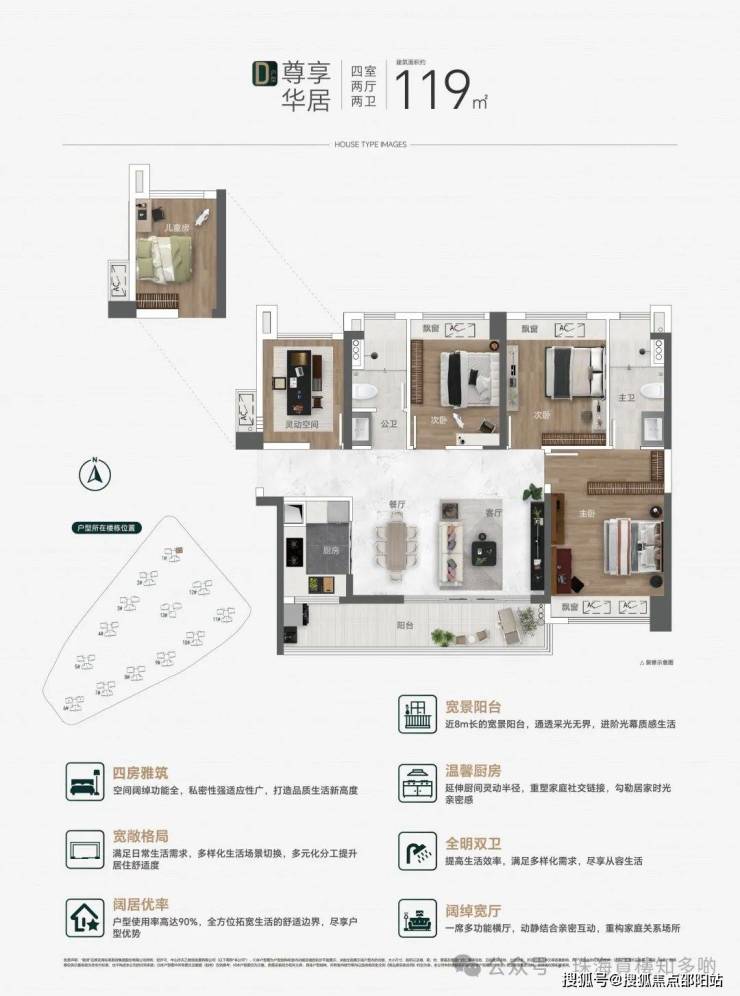 4.119m²尊享华居:南北通透,阔景大阳台,动静分区,全优户型