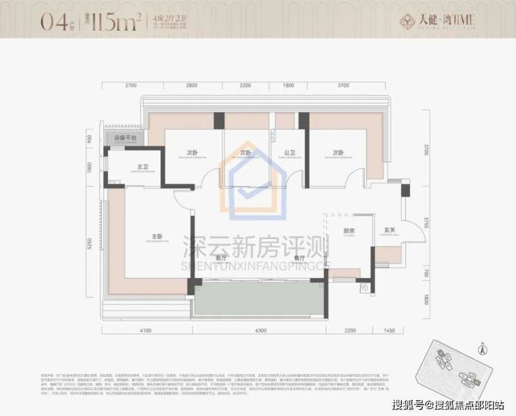 面积:113-115㎡四房两卫