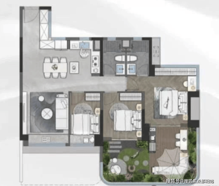 比如 110㎡的四房户型,实际使用面积可达 153㎡,实用率高达 139%。项目还运用了错层阳台设计,每个户型都有独特的空中花园,这样不仅增加了空间层次感,还提升了居住的舒适度和私密性,让高层洋房也有了别墅 “前庭后院” 的生活场景,住户可以在这里养花、种菜,甚至种树,尽情享受亲近自然的惬意生活。