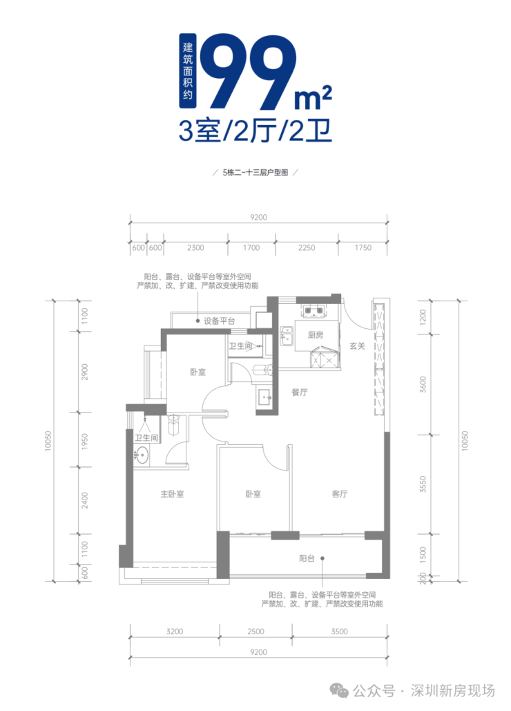 建面约99㎡三房两厅两卫