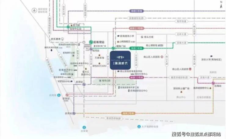 项目旁边在建的前海国际枢纽中心(地下6层),未来汇聚3条地铁(1/5/11 号线)、2 条城际线(穗深城际、深港西部快线),并规划深珠城际。