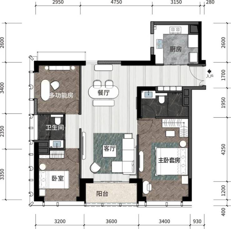 114-119㎡3房2厅2卫南北通透 观山眺海