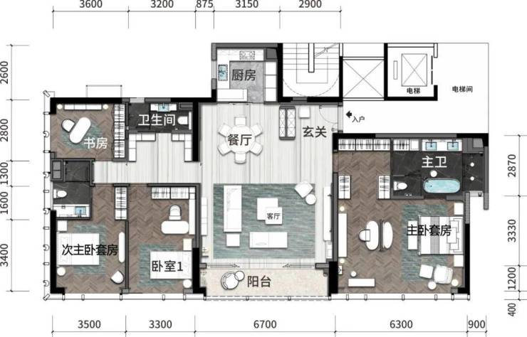 【产品面积段】112-115平3房2卫 、239平4+1房3卫